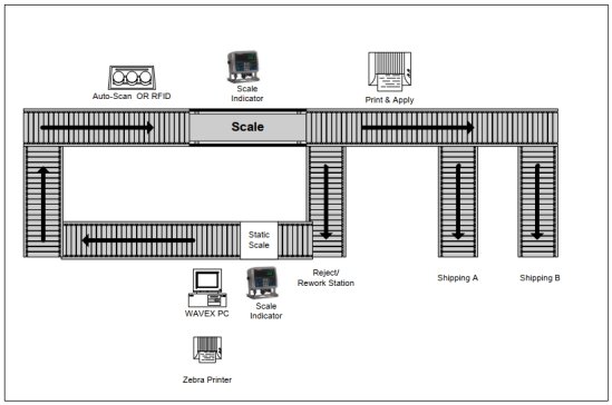 The standard system is designed to work with static or in-motion scales using a scale indicator, and will verify package ID numbers locally or via ODBC to a mainframe.